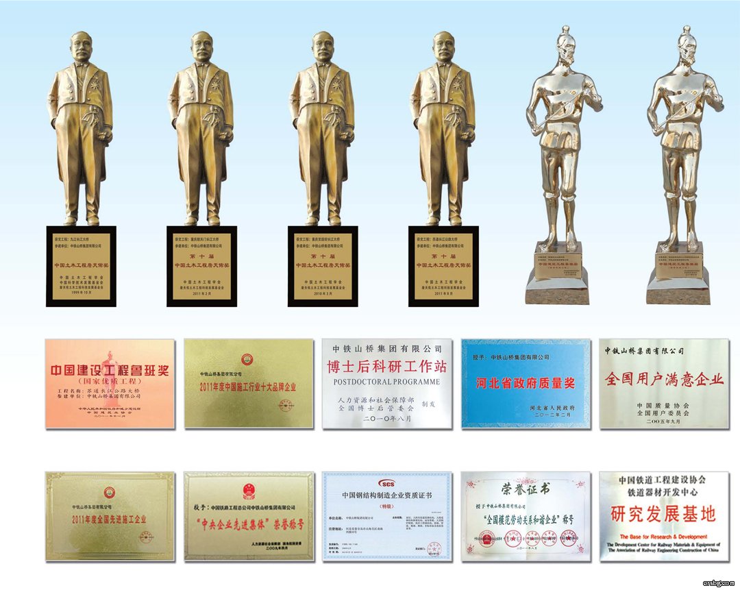中鐵山橋曾榮獲全國五一勞動獎狀、全國模范勞動關(guān)系和諧企業(yè)、全國先進施工企業(yè)、全國質(zhì)量管理先進單位、中國施工行業(yè)十大品牌企業(yè)、中央企業(yè)先進集體和國家科技進步特等獎、國家優(yōu)質(zhì)工程金獎、魯班獎、詹天佑獎。被中組部、河北省委命名為先進基層黨組織。
